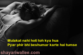 We have a collection of shayari on pyaar in hindi, send and share Shayari to your closest one. Love is a very important part of our life, without love it is very difficult to live a happy life. Shayari is one of the way to express your feeling and emotions, Shayari wallee has published the best pyaar par shayari, I hope you may like our best pyaar mohabbat ki shayari collection. You may also like our beautiful hindi love shayari.