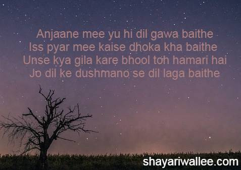 Get best collection of love dhoka shayari in hindi and english with photos here. If you are deceived by your partner, best friend then you can express your feeling by sharing dhoka shayari 2 line with images. Shayariwalle has the best collection of dhokebaaz shayari. You can send and share these shayari on whatsapp, facebook, etc.